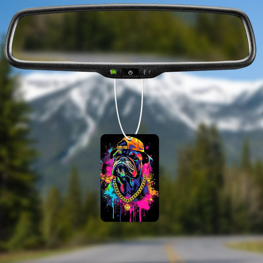 Colorful Dog with Chain and Hat Air Freshener